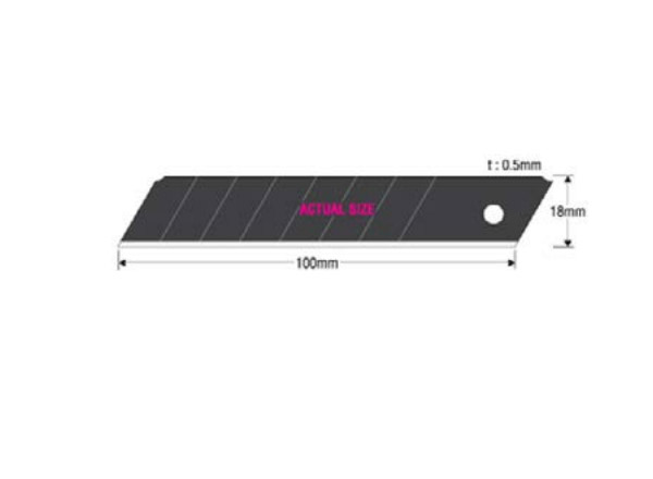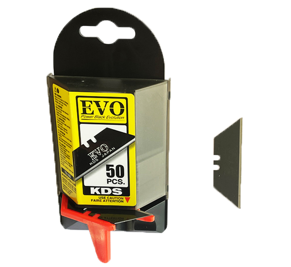 KDS TB-50 B EVO Trapezoid Type, Power Black Evolution Spare Blades are 61mmx19mm dimensions and 0,6 mm thickness. TB-50 B Trapezoid black spare blades have undergone the ideal heat treatment for cutter blades. Can safely be used in every heavy duty trapezoid type cutters and suitable for carpets and plasterboards. Every blister packing have 50pcs. of heavy duty spare blades.